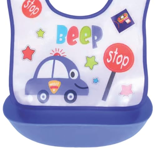 Mix&Max - Mix&Max Silicone Bib With Pocket Printed Car For Boys-Purple