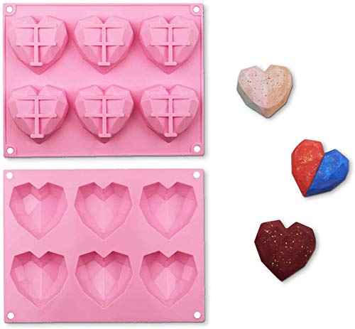 MixColours - Heart Silicone Mould, Food Grade Silicone Mould for Chocolate, Soap,Cakesicles, Candle, Wax melt, BPA Free, Pink 3D Love Heart Diamond Shaped Silicone Mold Cake Chocolate