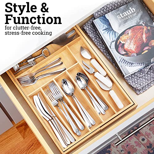 - 💙BEAUTIFUL LOOK - Water-resistant, 100% bamboo drawer organizer that wipes down easily with a damp cloth. The silverware tray makes everything look beautiful and better organized. It will match almost any decor.