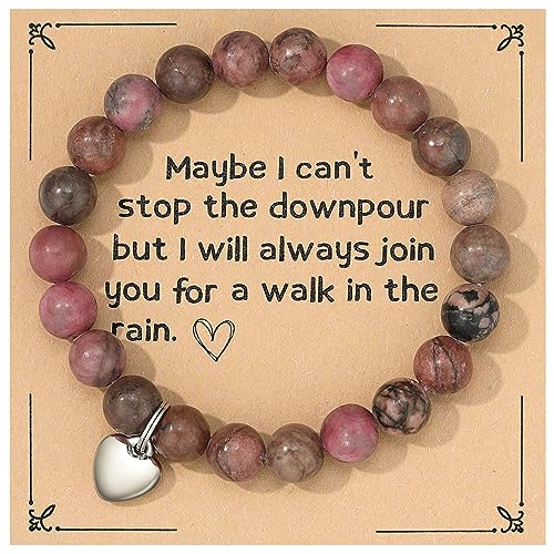 MIXJOY - سوار قابل للتمدد من الحجر الطبيعي بعبارة «Friend Going Through a Tough Time» «Maybe I Can't Stop The Downpur» احجار طبيعية in Need Thinking of You» و«Here for You» للنساء