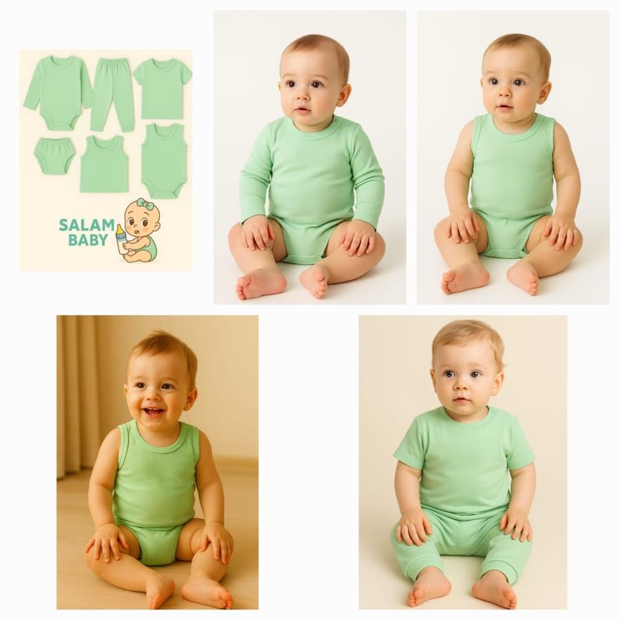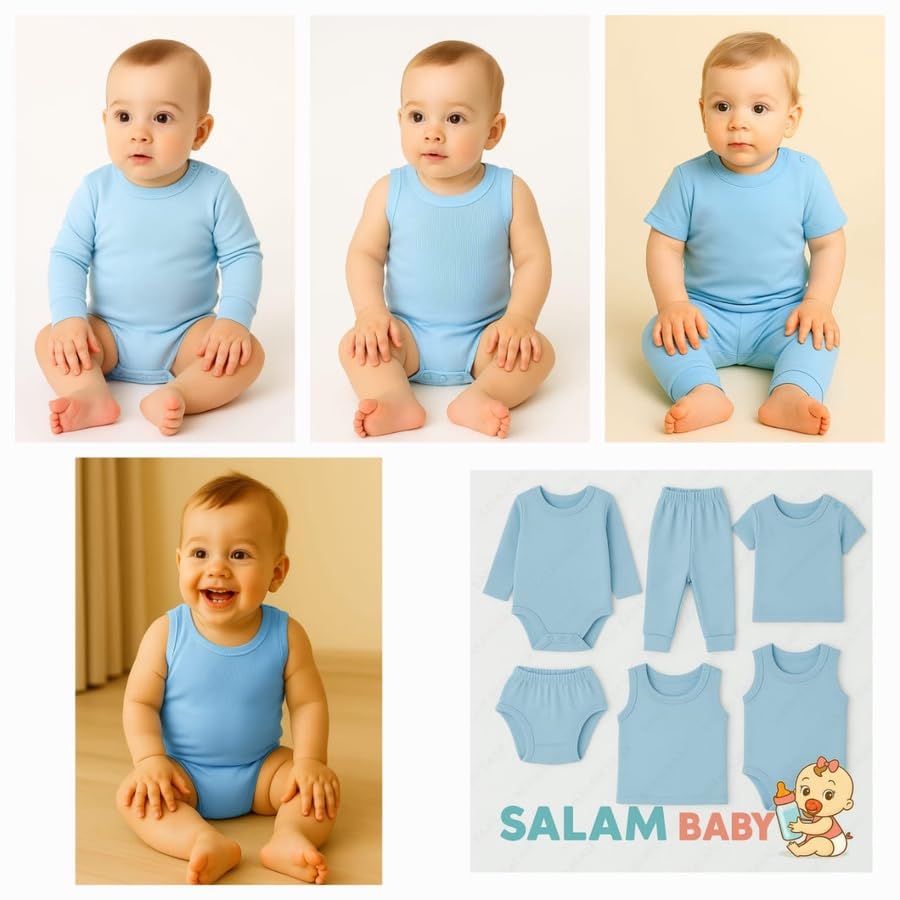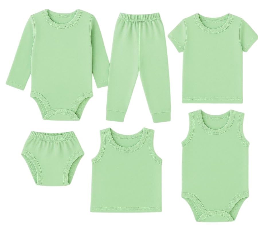 Meza - ميزا طقم ملابس داخلية للأطفال 6 قطع، قطن 100%، يشمل تيشرت وسولبيت وبنطلون وفانيلة واندر، للرضع من 0 إلى 12 شهر، متوفر بألوان متعددة