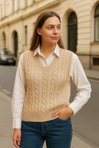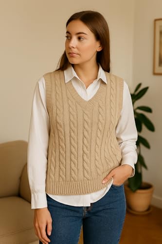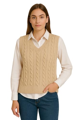 Meza - سترة صدرية من ميزا برقبة V للنساء، قصة عادية بدون أكمام، محبوكة، مقاس موحد