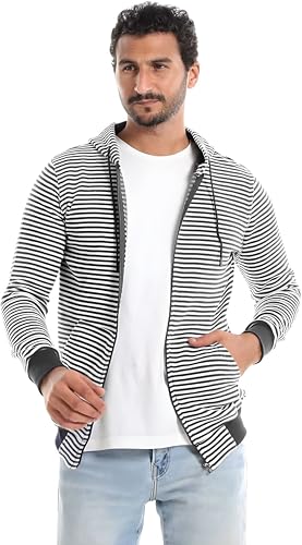 Meza - Mizah Men's Striped Hooded Jacket - Fashionable and Comfortable Design with Side Pockets - Oversize Dress from 50 to 85K