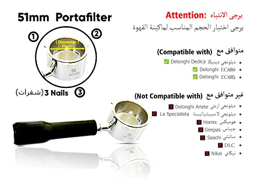 - COMPATIBILITY: MIZAJIC Espresso Coffee portafilter 51mm is compatible to Delonghi Dedica,EC860/EC865, La Pavoni and most of the coffee machines with size of 51mm portafilter with 3 ears exact in shape shown in picture. Please carefully check the size of your coffee machines portafilter before making a purchase.