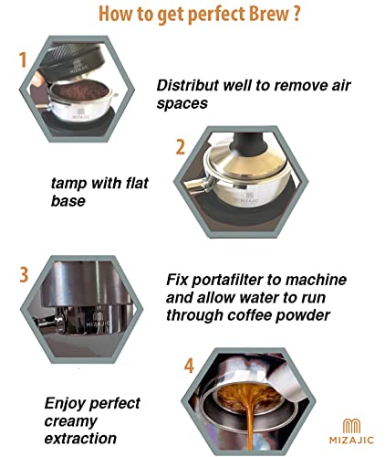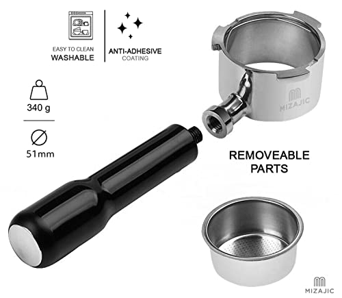 - ERGONOMIC DESIGN: MIZAJIC 51mm portafilter’s stainless steel fine mesh basket don’t allow the coffee powder to run through the pores, Keeping the original flavor of the coffee and doesn’t remove its aroma like paper filters. Ergonomically designed handle provides comfortable grip that help in stable operation, removable design makes it easy to Assemble, disassemble, use, and clean.