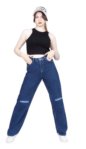 Meza - MIZAYA Women's High Waist Ripped Jeans - Wide Leg Wide Leg - Comfortable and Trendy Cut Out Design in Multiple Colors - Perfect for All Occasions