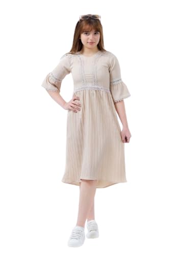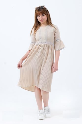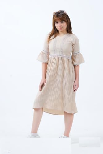 Meza - MIZAYEH Girls Summer Pleated Dress with Lace - Loose and Comfortable Fit - 8-12 Years