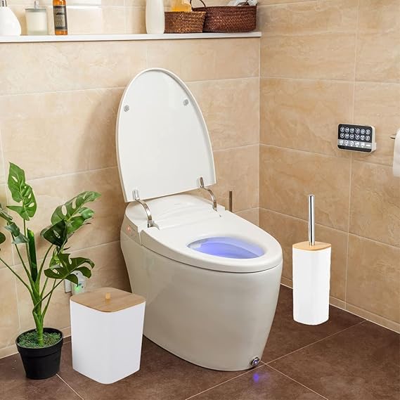 - MODERN DESIGN: Clean white exterior with natural wood-tone lids creates an elegant, contemporary aesthetic that enhances any bathroom decor