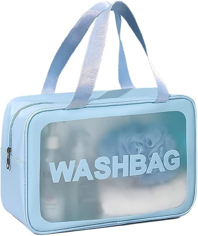 Generic - MJ Washbag Transparent Cosmetic Bag Practical Travel Cosmetic Bag for Women and Girls, Stylish and Practical Design for Organizing Accessories and Toiletri, Light Blue Toiletry Bag with Handles, 30 cm