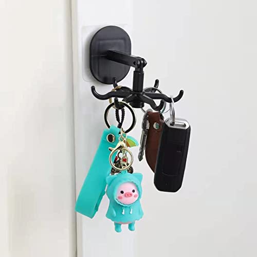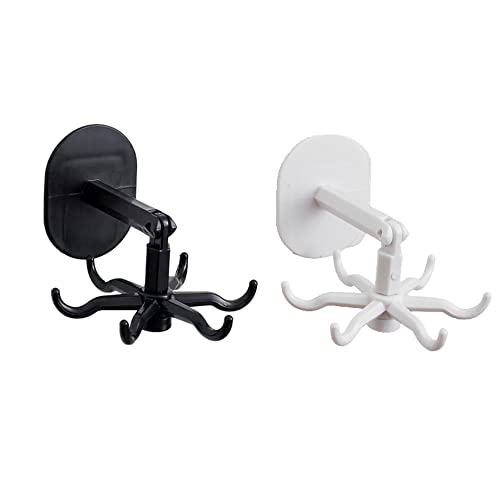 MJEMS - شماعة ذاتية اللصق لاواني المطبخ تثبت على الحائط من ام جي اي اس تدور بزاوية 360 درجة قابلة للطي مع 6 خطافات للمطبخ والحمام والخزانة والمكتب عبوة قطعتين اسود وابيض خشب بلاستيكي 35.0 رطل 35.0