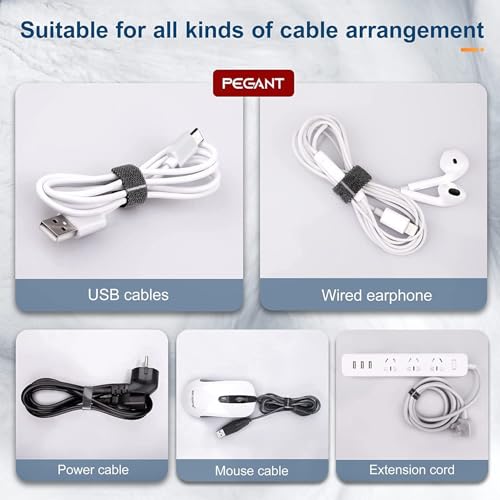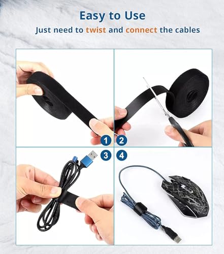 MJHB - Tidy Management Fastening Tape Sticky Strips Hook Loop Reusable Flexible Wire Ties Cable Organiser for Computer, TV, Power and Other Cables