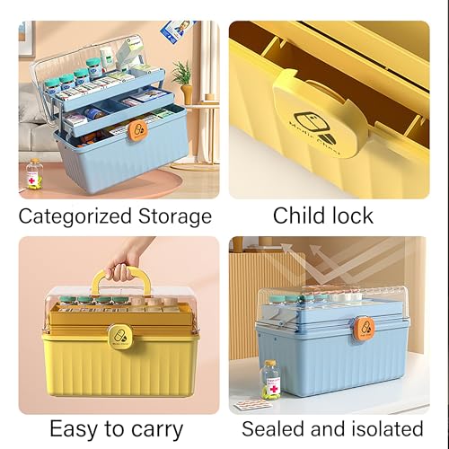 - ✅PORTABLE DESIGN: With a handle, you can easily take our medicine organiser on caravan trips, picnics and outings. Our portable medicine box comes with a lock to protect your items from falling out. It can be used in kitchens, pantries, bathrooms, wardrobes, children's rooms, playrooms, daycare centres, offices and more.