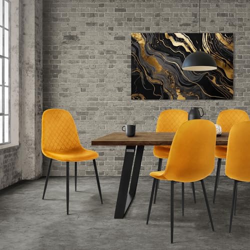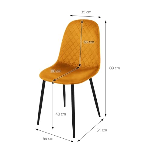 ML DESIGN modern living - ML-Design Dining Room Chairs, Set of 4, Mustard Yellow, Kitchen Chairs with Velvet Cover, Living Room Chair with Backrest, Upholstered Chair with Metal Legs, Ergonomic Chair for Dining Table, Dining