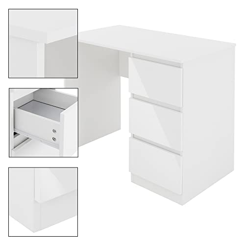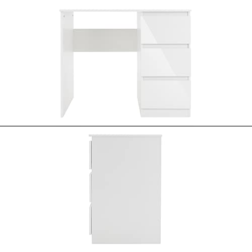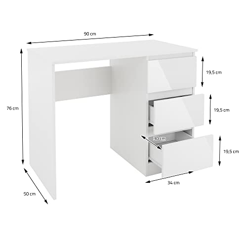ML DESIGN modern living - ML DESIGN modern living ML-Design Desk with 3 Drawers, 90x76x50 cm, White, High Gloss Drawer Fronts, Large Storage Space, Work Desk Office Table Computer Table Office Furniture Table