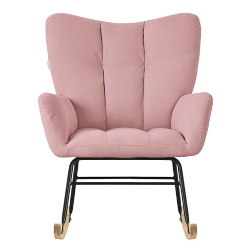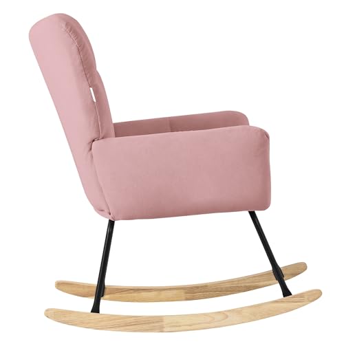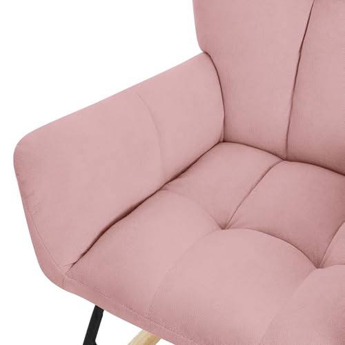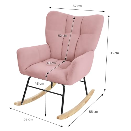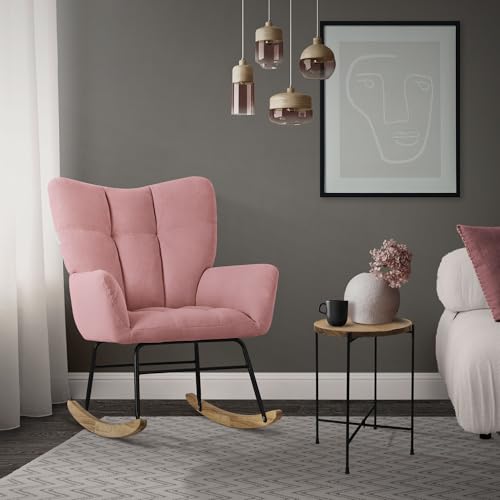 ML DESIGN modern living - ML-Design Rocking Chair Pink with Cover in Terry Cloth Look, Padded Swing Chair with Wooden Skids, Relaxing Chair with Armrests for Living Room, Bedroom, Balcony, Relaxing Chair, Wing Chair
