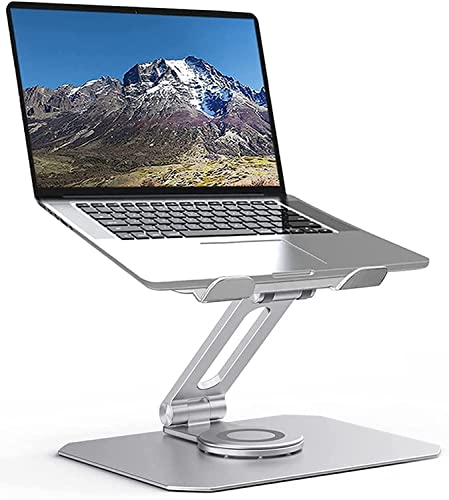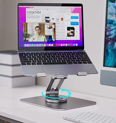 MMMA - حامل لاب توب قابل للتعديل مع قاعدة دوارة 360 درجة، حامل لاب توب مريح للعمل التعاوني، عمود دوار مزدوج قابل للطي بالكامل لسهولة التخزين، يناسب ماك بوك/جميع أجهزة اللاب توب حتى 16 بوصة من ام ام ام اي