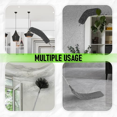 - Versatile and Practical: Our multi-purpose dusting kit is a match made in heaven for any cleaning task. From walls to high ceilings, blinds to bookshelves, household appliances to lampshades, photo frames to offices, and even cars and trucks – this kit handles it all. Experience the convenience of having one comprehensive cleaning solution for your entire home and beyond.