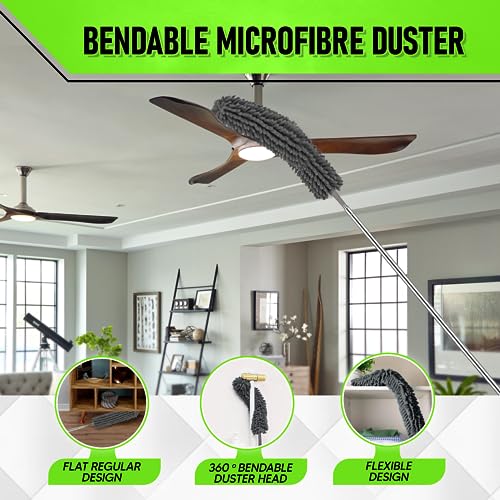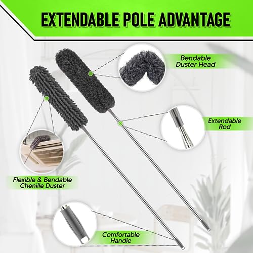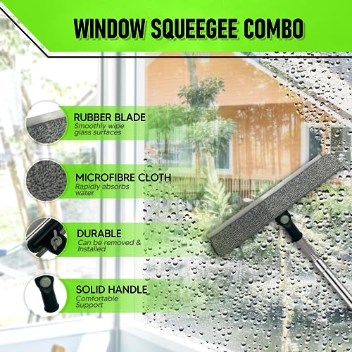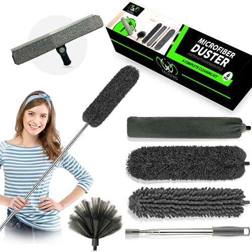 - Complete Cleaning Solution: Say goodbye to dust and dirt with our comprehensive kit. It features a window cleaning squeegee, along with 4 versatile cleaning dusters designed to tackle any cleaning challenge. From the bendable microfiber duster head to the chenille duster head, crevice brush, and cobweb duster, we've got you covered.