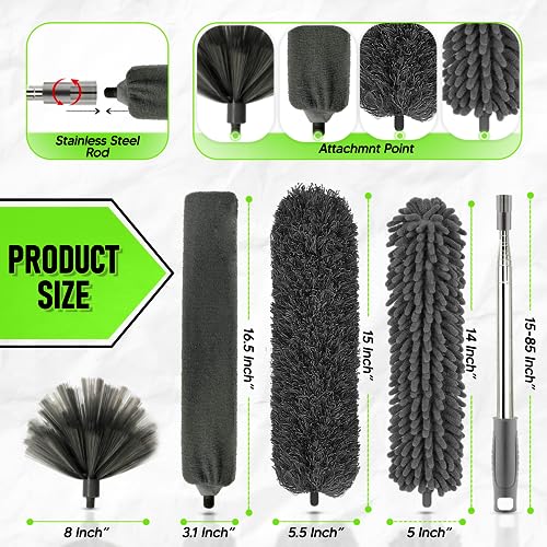 - Dust-Busting Powerhouse: Harness the strong capacity of our kit to capture dust effectively. With its variety of dusters, including the bendable microfiber duster head, chenille duster head, crevice brush, and cobweb duster, you can easily tackle dust from any area or surface, leaving your home impeccably clean.