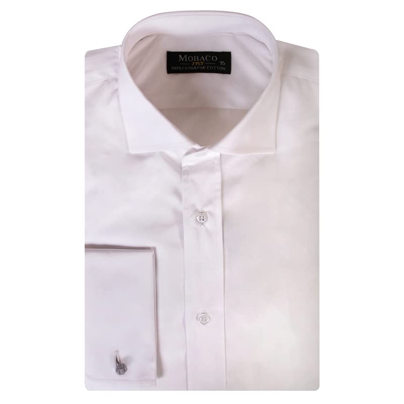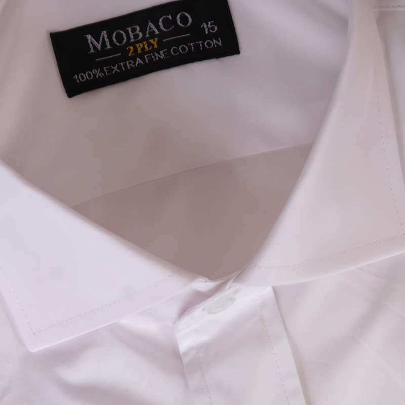 Mobaco - قميص رجالي من موباكو، باكمام طويلة، اساسي، بقصة عادية، بياقة إيطالية واساور اكمام مزدوجة - ابيض، مقاس XXL