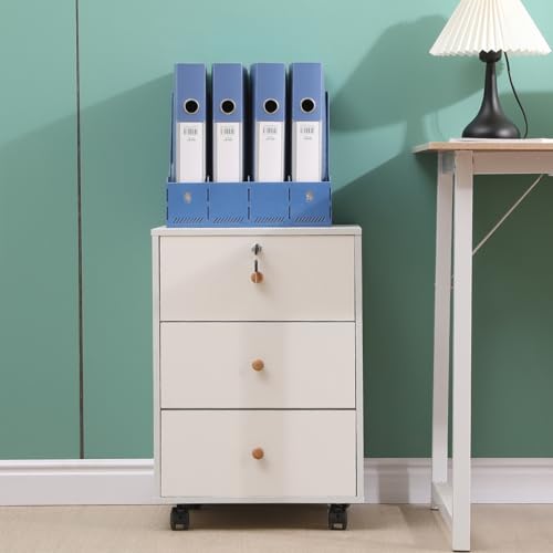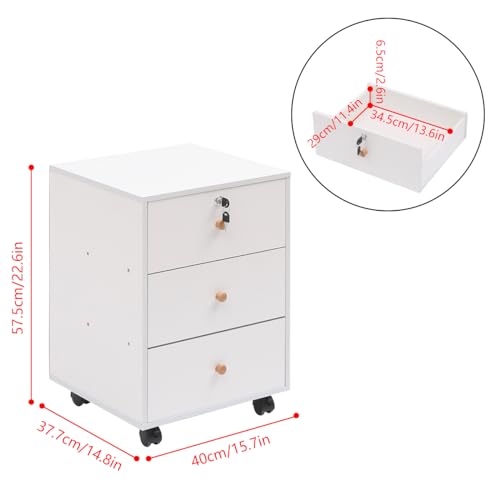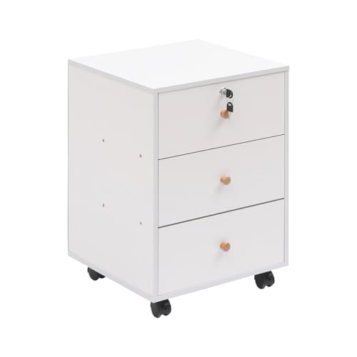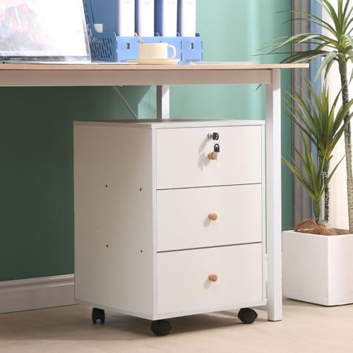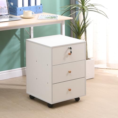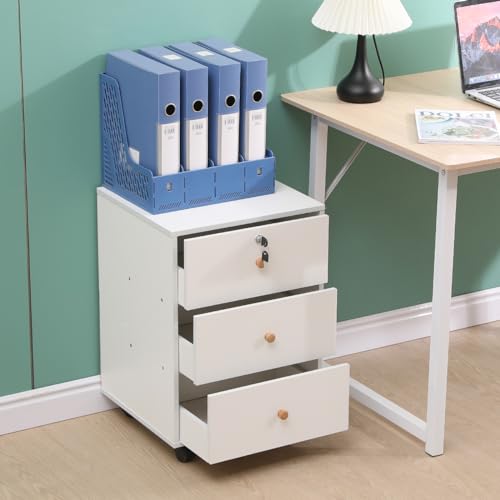 Homullel - Mobile File Cabinet, Home Office Under Desk Drawers, Small Bedside Drawers on Casters, File Storage Pedestal, Under Desk Storage Unit, Top Drawer Lockable (Solid White)