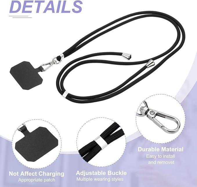 Generic - Mobile Magic Phone Chain, Removable, Phone Case Chain Lanyard, Mobile Phone Strap for Hanging, Mobile Phone Chain Adjustable with Cord & Pad, Lanyard for All Smartphones. (Black)