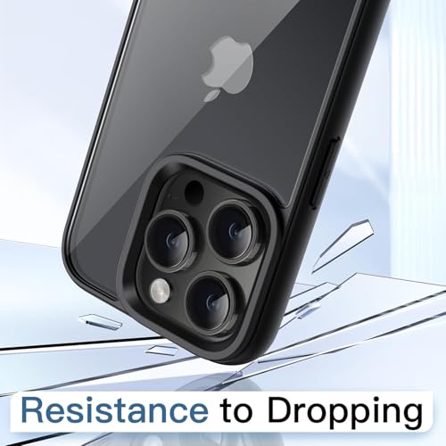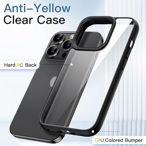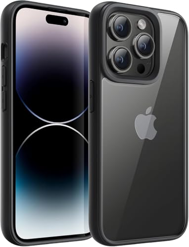 MOBILE MAGIC - حافظة حماية من موبايل سحري لآيفون 14 برو ماكس، بمبر مع باك شفاف مصنوعة من TPU باللون أسود/شفاف