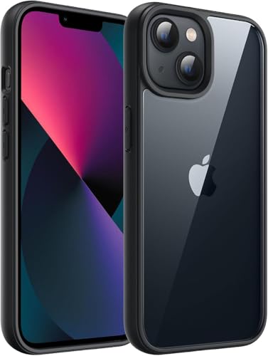 Generic - جراب مضاد للصدمات بإطار من البولي يوريثين الحراري مع ظهر شفاف مضاد للخدش لموبايل آبل آيفون (13/14)، لون أسود