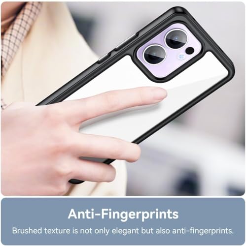 Generic - جراب حماية مضاد للصدمات بإطار من البولي يوريثين الحراري بلون أسود غير لامع مع ظهر شفاف مضاد للخدش لموبايل أوبو رينو 13F (4G/5G) / رينو 13FS من موبايل ماجيك - لون أسود