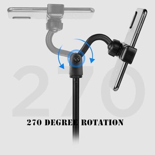 - EYE-LEVEL VIEW: Perfect phone angle for holding video calls, watching movies, and reading. Position screen height 9 to 14" (incl. 360° rotation & 50° tilt) to avoid text neck, back strain, and bad camera angles. Extra-wide 6.4-9cm” clip-on holders.