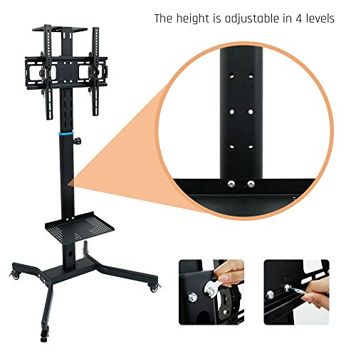 - 【Universal Fit and Compatibility】The mobile TV stand with mount is suitable for most 23-52 inches TVs brand such as for Hisense, Insignia, LG, Panasonic, Philips, Samsung, Sanyo, Sharp, Sony, TCL, Toshiba, Vizio, Westinghouse, Zenith, and so on. Please make sure your TV’s VESA (The size of four mounting holes at the back of your TV) falls between 50x50 to 400x400 mm.