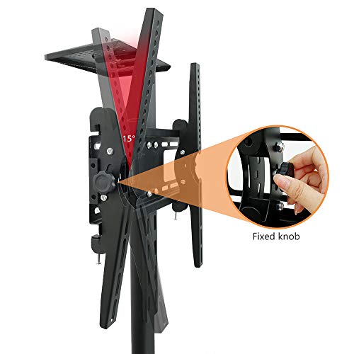 - 【Height Adjustment & Tilt Mount】Freely adjust both the mounting bracket and shelf to the height you prefer. The 55 inch TV cart mobile TV stand features -15° to +5° tilt function to ensure you a comfortable viewing sight.