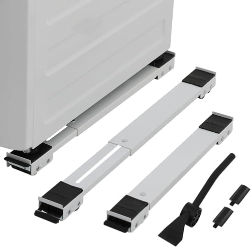 - SUPERIOR DURABILITY UP TO 440 KG & ADJUSTABLE: Made of sturdy and lightweight metal construction, tested to support weights up to 440 Kilograms (over the weight of most household appliances) ensuring long life span You can also expand or simply tighten it to fit different sizes and rules of devices, making it a flexible, versatile solution.