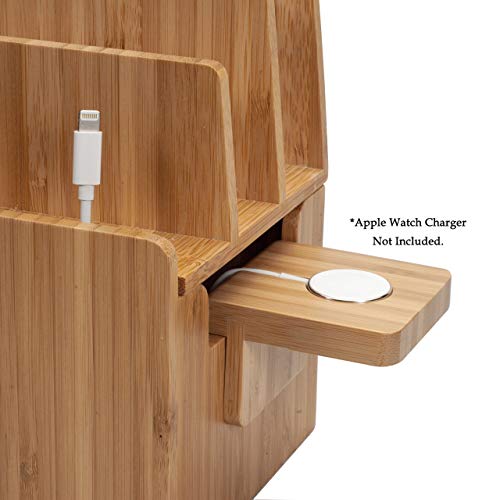 - [Centralized Multi-Device Charging with Apple Watch Dock] Effortlessly charge your iPhone, Apple Watch (using your own charger), tablets, and other tech devices in one compact and stylish bamboo station, eliminating clutter and creating a dedicated charging hub without taking up excessive space.