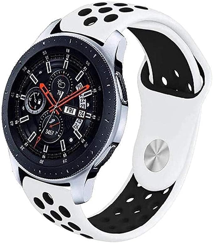 Mobilic - حزام سيليكون رياضي لساعة جالاكسي 4 مقاس 20 ملم من موبايليك ساعة 3 41 أكتيف 2 40 - 44 جير سبورت - ابيض واسود للجنسين
