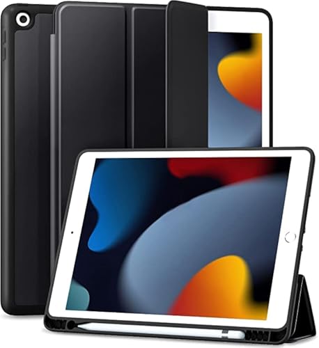 Mobilic - Case Compatible With Ipad 9Th/8Th/7Th Generation Case/Ipad Case 10.2 Inch, Smart Folio Soft Tpu Protective Case Cover With Apple Pencil Holder For Ipad 9Th/8Th Gen,Full Body Protection- Black