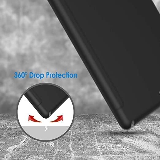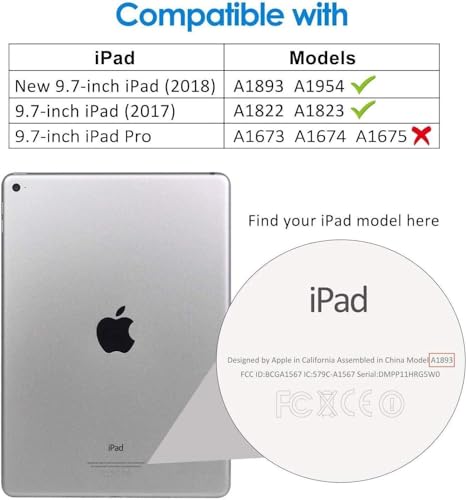 China - جراب جهاز ابل ايباد (9.7 بوصة، موديل 2018/2017، الجيل السادس/الخامس) من موبايليك، مزود بغطاء ذكي بميزة التشغيل/النوم التلقائي، لون اسود، البوليستر