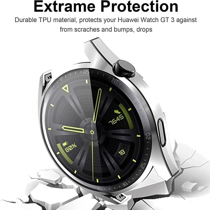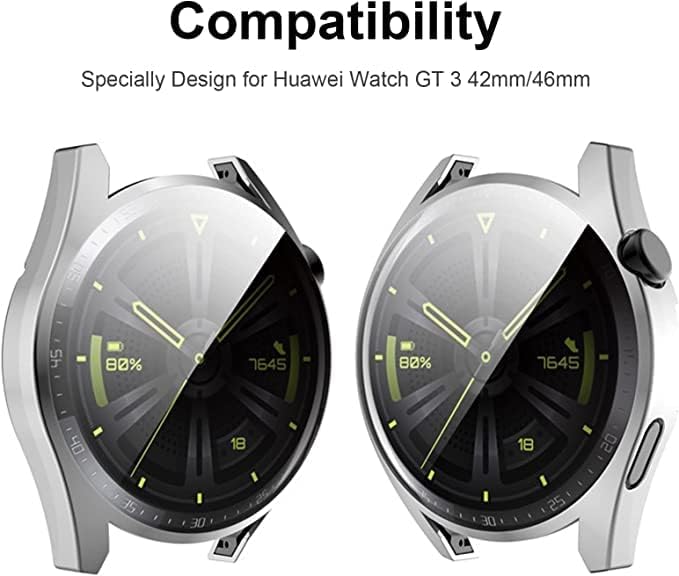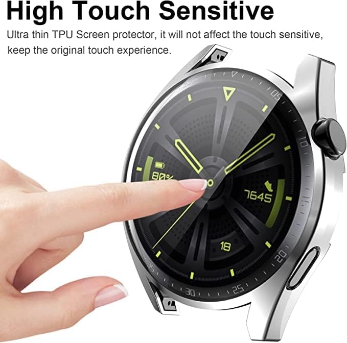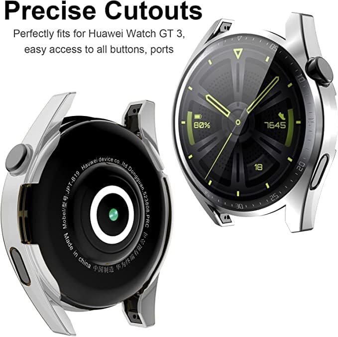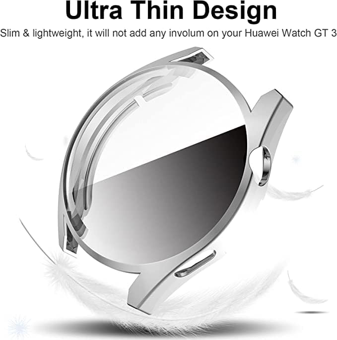 China - Mobilic Case For Watch GT 3 42mm/46mm, With Ultra thin HD Soft TPU Screen Protector Bumper Protective Shell Shockproof Silver