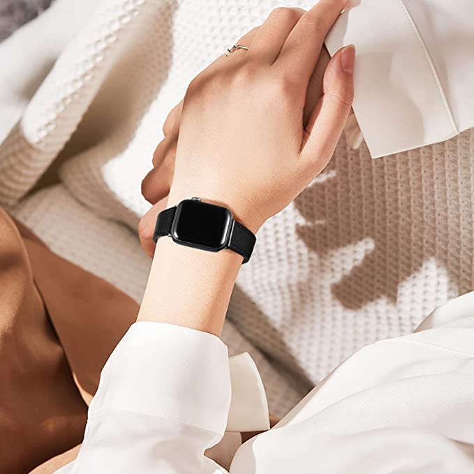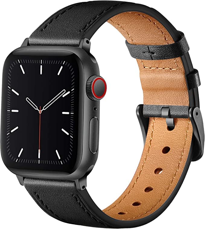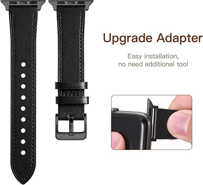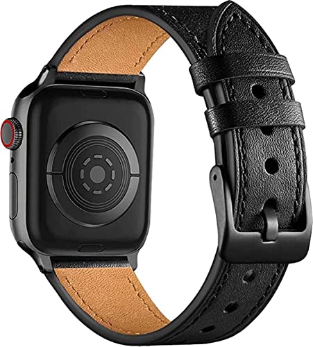 Mobilic - Compatible With Apple Watch Strap - Genuine Leather Straps Replacement Band Compatible With Apple Watch Strap 44mm 42mm 45mm & Iwatch Strap Series 7/6/Se/5/4/3/2/1 - Black