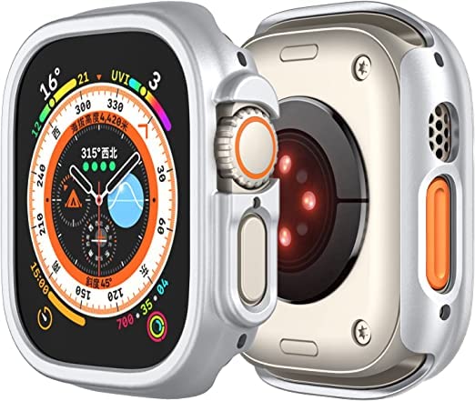 Mobilic - Compatible with Watch Ultra 49mm Hard PC Case Cover Resistant Impact Shockproof Protective All Around Edge Protective PC Hard Bumper Cover Face for Watch Ultra 49mm Silver