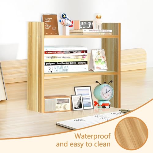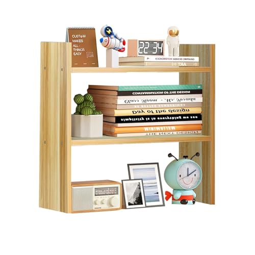 Mobpqable - Wood Desk Organizer - Small Desk Hutch Dorm, 2 Tier Desktop Bookshelf for Workspace Organizers, Shelf for Office Storage