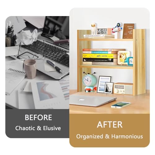 - Workspace Organizer - This desk shelf organizer is ingeniously designed to maximize your available surface area. Desk shelf for top of desk helps eliminate clutter by offering a neat and organized space for books, photos, small plants, and essential office supplies, transforming your workspace into a clean and inspiring environment.