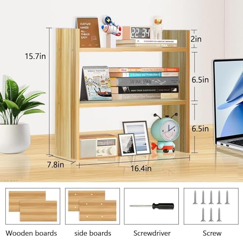 - Effortless Assembly - Thoughtfully designed with simplicity in mind, the desk organizer shelf consist of four sturdy wooden panels that can be easily assembled in just a few minutes using only a handful of screws. Compact size of desk shelves ensures convenience without compromising on storage capacity.