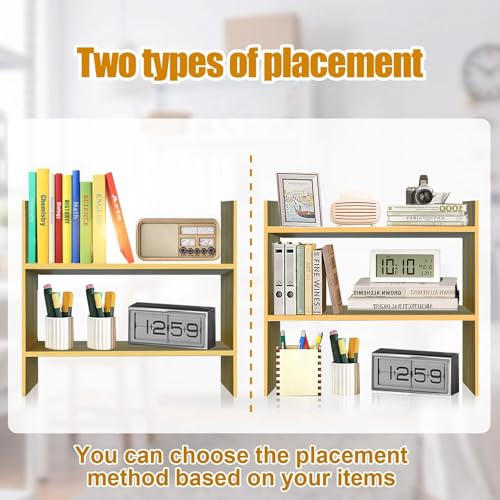 - Exceptional Stability - Constructed from dense, high-quality wood, the desk top shelves remain robust and steadfast even after installation.Even if the desktop organizer shelf is used upside down, it is still stable.