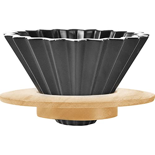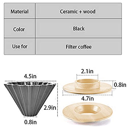 MOCOHANA - Ceramic Coffee Dripper Pour Over Coffee Maker with Wood Stand Elegant Flower Shape V60 Filter for 1-2 Cups Slow Brewing Accessories for Home Cafe Restaurants Black
