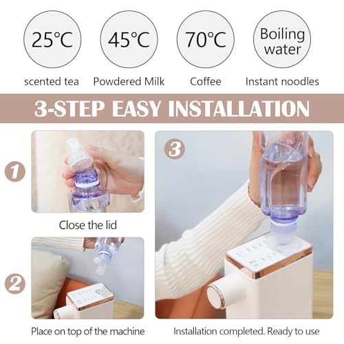 - 🎁【استخدام واسع】هناك ثلاثة طرق لاستخدام موزع المياه الساخنة الفوري. إحدى الطرق هي تركيبه مع خزان ماء، والطريقة الثانية مع زجاجات المياه، والطريقة الثالثة مع زجاجة مياه معدنية، ويمكن استخدامه في المكاتب، المدارس، الفنادق، السكن الجامعي، السفر، التخييم والمطابخ.