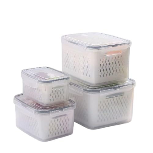 Generic - Modern 4 Piece Refrigerator Box Set with Inner Strainer - Premium Quality Material and Stylish Design - Smart Food Organizer Set to Keep Freshness and Save Space Professional Large