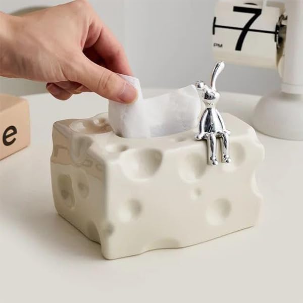 Generic - Modern Abstract Figurine Tissue Box Holder, White Ceramic with Silver Figure, 12 cm Decorative Design