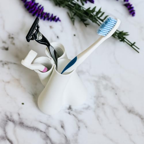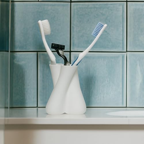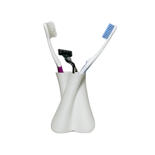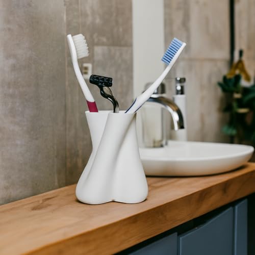- MODERN DESIGN: Elegant twisted vase design with 3 compartments for organizing toothbrushes and razors, adding a stylish touch to any bathroom decor