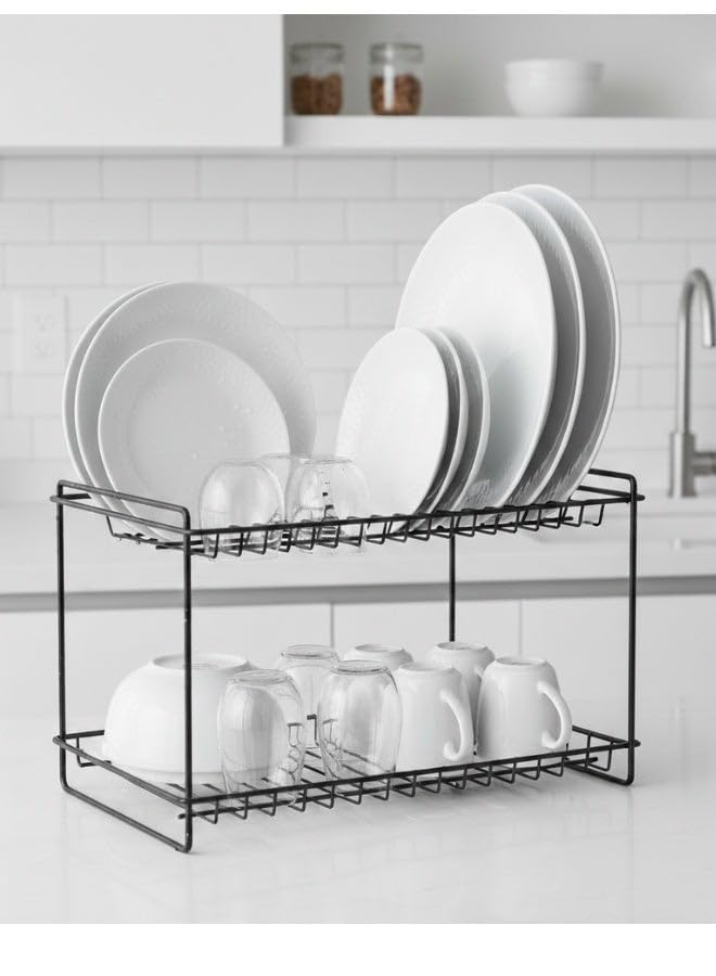 Generic - رف تجفيف الاطباق من طبقتين من مودرن - منظم ادوات المطبخ من الستانلس ستيل بسعة كبيرة 38 × 27 سم - مقاوم للصدأ وسهل التنظيف